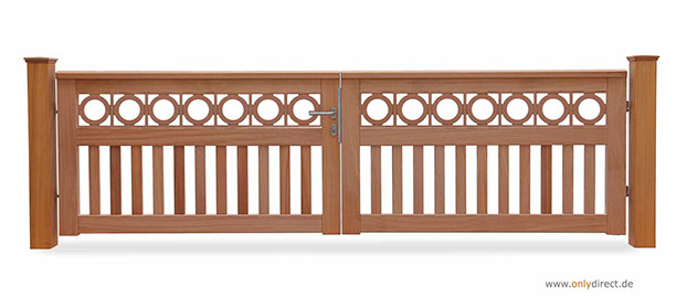 PREMIUM - Gartentore mit oder ohne nostalgischem Satteldach - Anfertigung nach Maß - Mahagoni Hartholz (FSC) oder nordische Lärche.